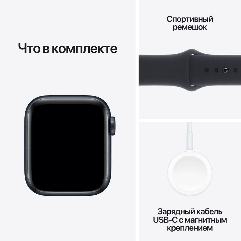 Apple Watch SE 2023, 40 мм, корпус из алюминия цвета «тёмная ночь», силиконовый спортивный ремешок цвета «тёмная ночь»