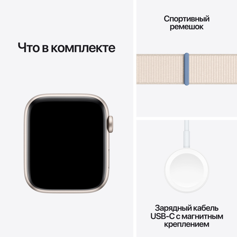Apple Watch SE 2023, 44 мм, корпус из алюминия цвета «сияющая звезда», спортивный браслет цвета «сияющая звезда»