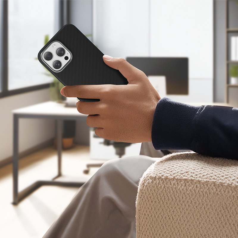 Невероятно легкий и тонкий чехол из суперпрочного арамидного волокна. Поддерживает беспроводную зарядку.