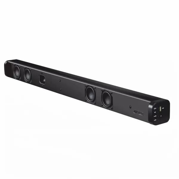 Корпус фирменного саундбара имеет простую, эргономичную форму. Благодаря ее компактным размерам, акустику можно без труда разместить на тумбочке около телевизора или повесить на стену. При этом, глубокий черный цвет отделки позволяет легко вписать прибор в любой интерьер.