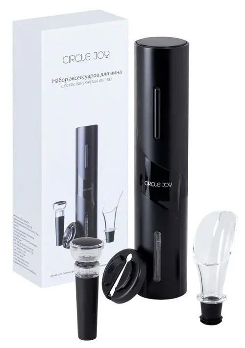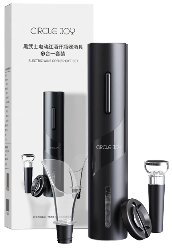 Винный набор Xiaomi Circle Joy Darth Vader 4 in 1 Set CJ-TZ07 состоит из электрического штопора, ножа для снятия этикетов, аэратора и вакуумной пробки. Для питания электрического штопора используются четыре батарейки АА.